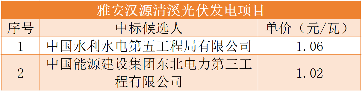 根据公示情况,中国电建下属中国水利水电第五工程局以1.06元/瓦的报价位列第一中标候选人,中国能建旗下东北第三工程局报价则为1.02元/瓦。