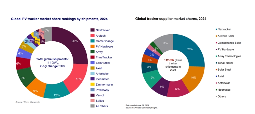 近期,全球多家第三方机构发布2024年度跟踪支架市场报告。其中,标普全球(S&P Global)和伍德麦肯兹(Wood Mackenzie)报告皆显示2024年全球跟踪支架年度出货量首次突破百吉瓦大关,同比增长约20%。
