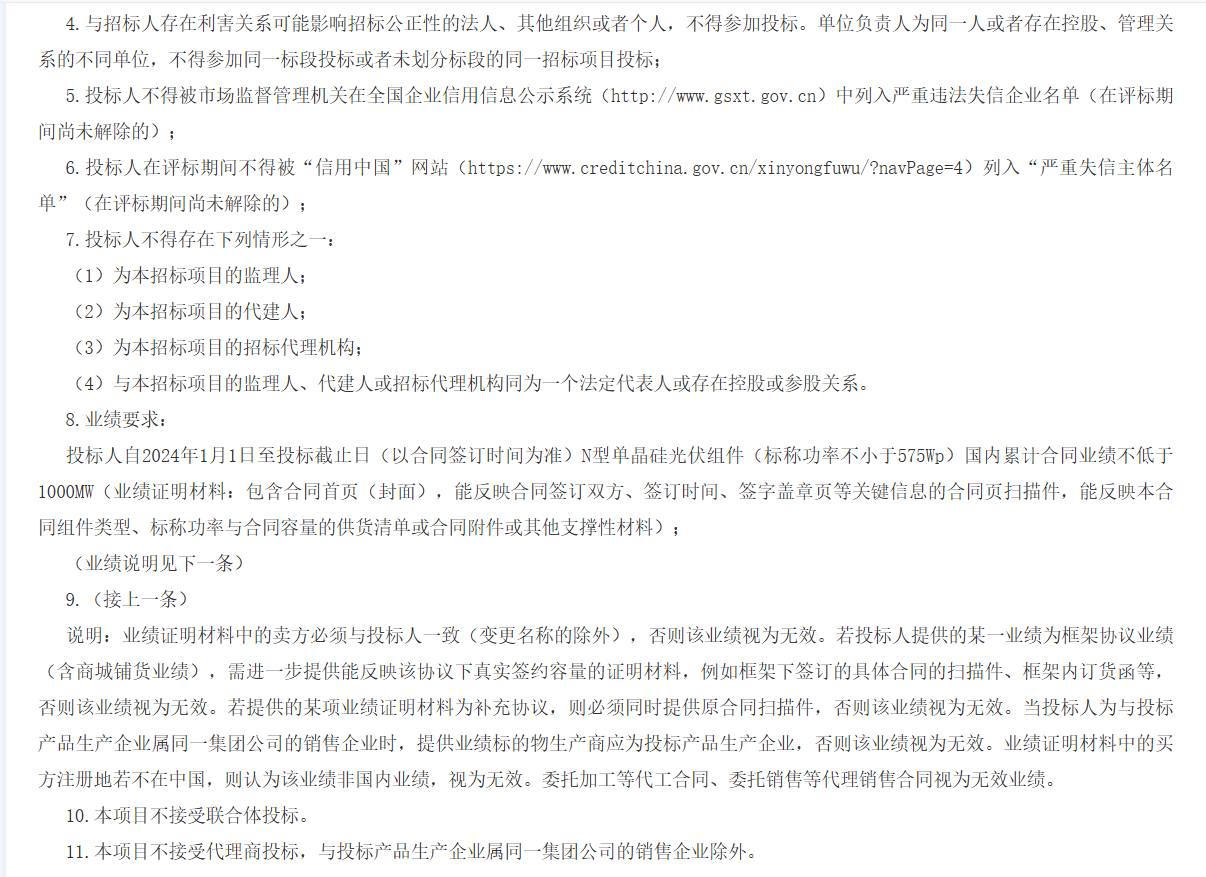 标段二规模为2GW,不限组件类型,转换效率要求≥为23.8%。