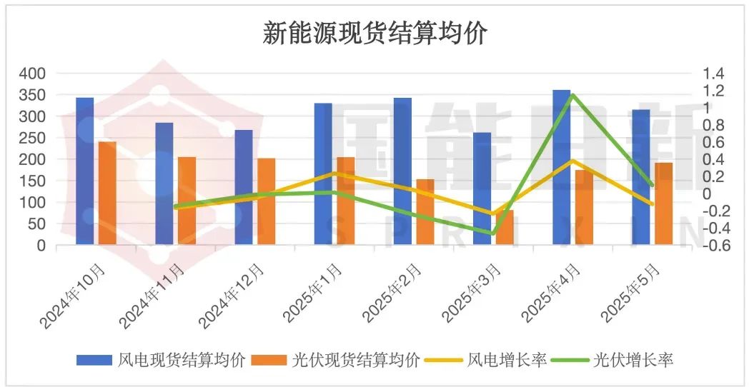从新能源出力角度来看,5、6月光照时间延长、风力条件改善,光伏和风电出力进入季节性增长期。新能源出力在5、6月持续上升,新能源发电边际成本接近零,大量低价新能源电力注入市场,拉低了整体电力交易价格。