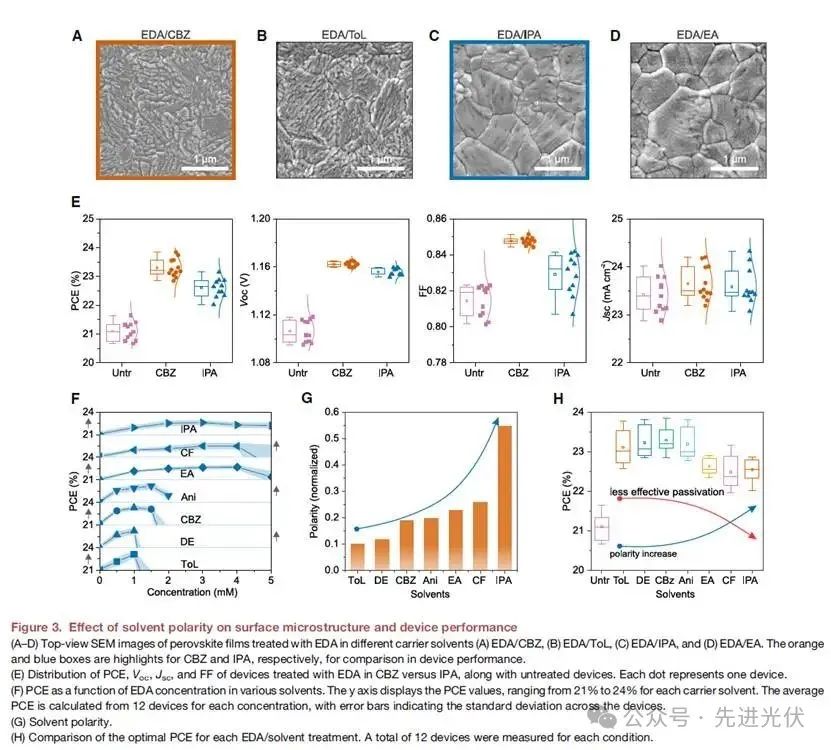 溶剂极性对钙钛矿薄膜表面结构与器件性能的影响