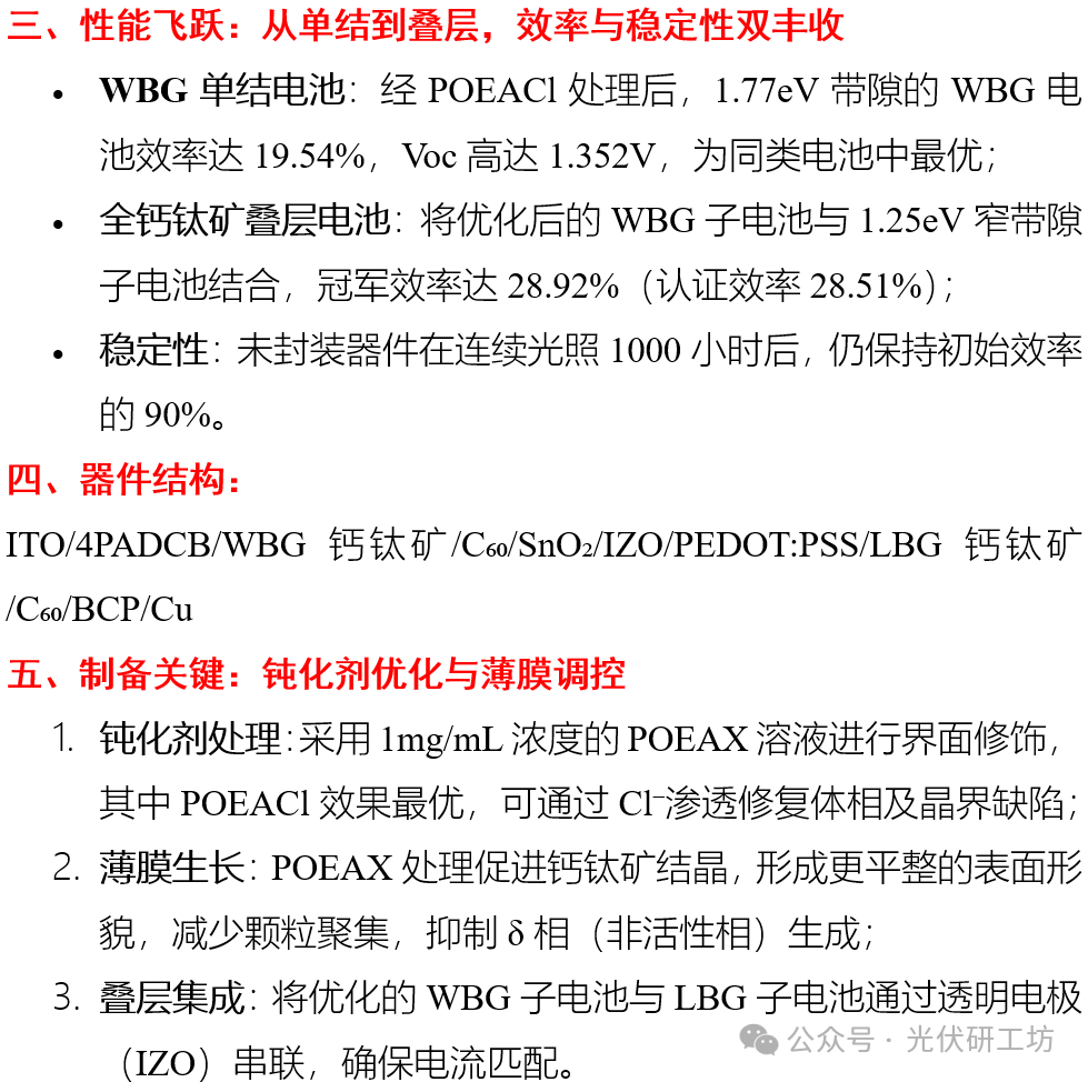 无机钙钛矿太阳能电池实现了超过21%的创纪录效率。团队成功解决了长期存在的难题,发明了一种在完全无机钙钛矿太阳能电池上制造耐用保护层的方法。解决退化问题限制钙钛矿太阳能电池采用的主要障碍是快速降解,暴露于湿度、温度或压力等波动的大气条件下,会导致钙钛矿材料在效率和材料性能上迅速下降。