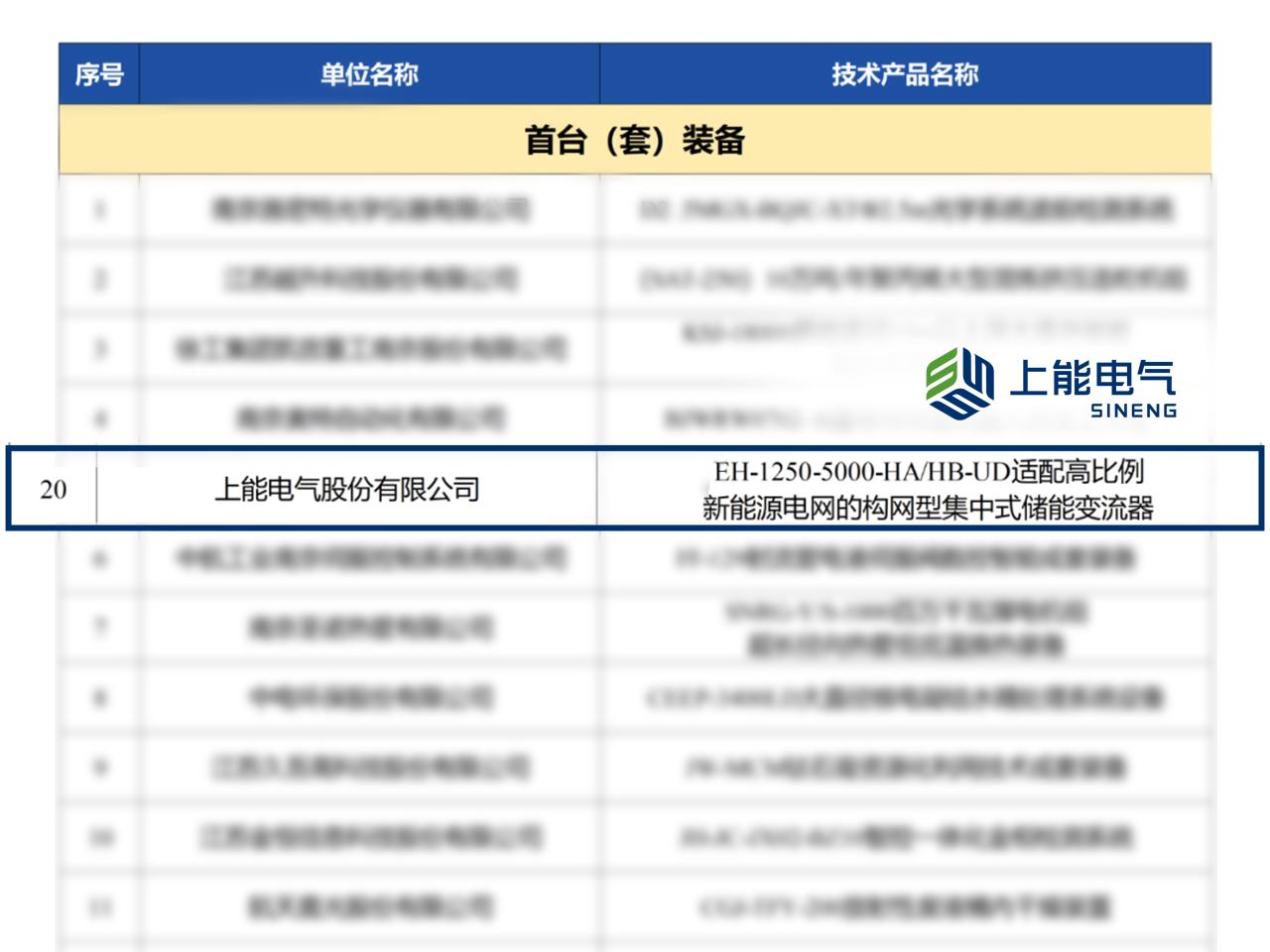 近日,江苏省工业和信息化厅正式公布了2025年度江苏省“三首两新”拟认定技术产品名单,上能电气1250kW构网型集中式储能变流器成功入选首台(套)装备。这一荣誉再次验证了上能电气在研发创新和技术实力方面的卓越表现,获得权威部门的高度认可。