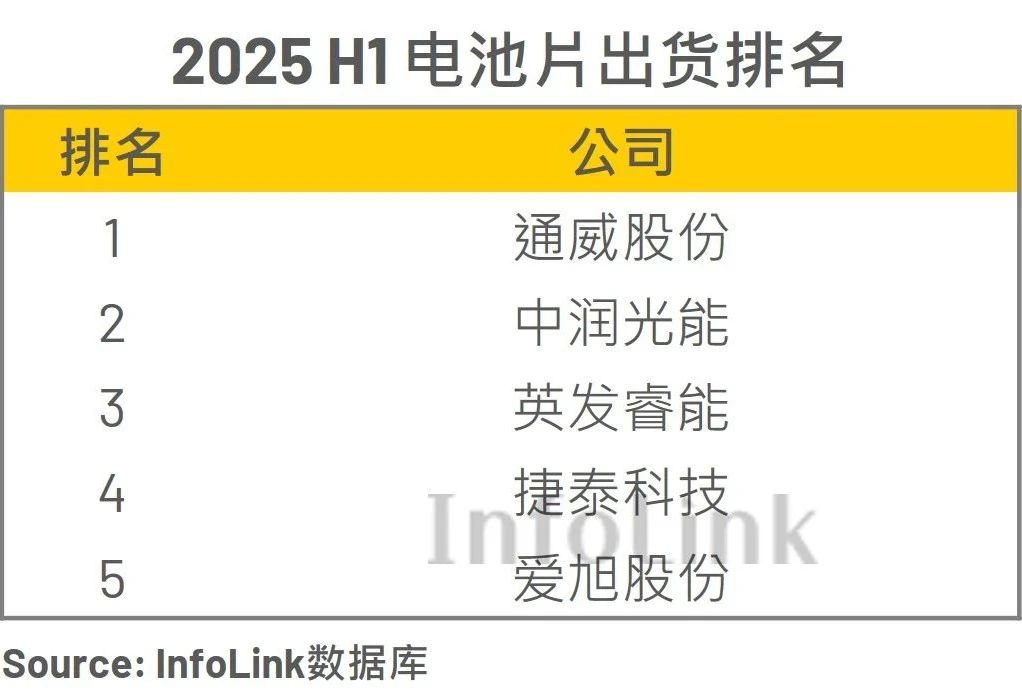 8月8日,光伏产业权威分析机构PV InfoLink正式发布2025上半年电池片出货排名,通威总出货量稳居榜首。