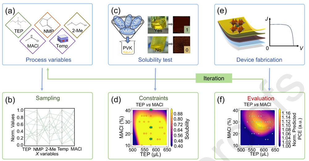 1.基于两步贝叶斯机器学习的低毒性溶剂环境空气加工钙钛矿太阳能电池