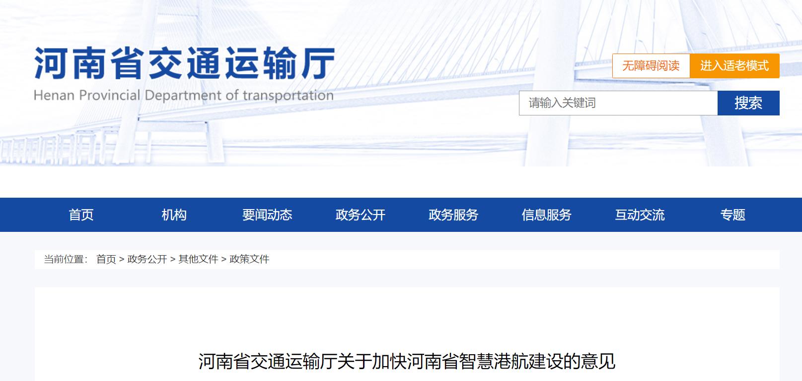 河南省交通运输厅关于加快河南省智慧港航建设的意见