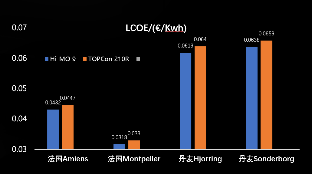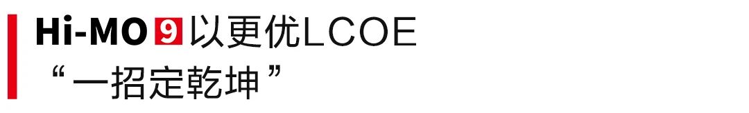 众所周知,度电成本(简称“LCOE”)是衡量发电项目经济性的重要指标,组件选型则是影响项目成败的关键因素。通过测算数据可以看出,BC组件Hi-MO 9在提升项目发电量的同时,极大驱动了项目成本结构的进一步优化,为客户电站在全生命周期内的收益最大化奠定了坚实基础和可靠保障。经IPVF严密测算,目标电站在应用了BC组件Hi-MO 9后,其度电成本(LCOE)相比应用TOPCon 组件平均低出3.32%。