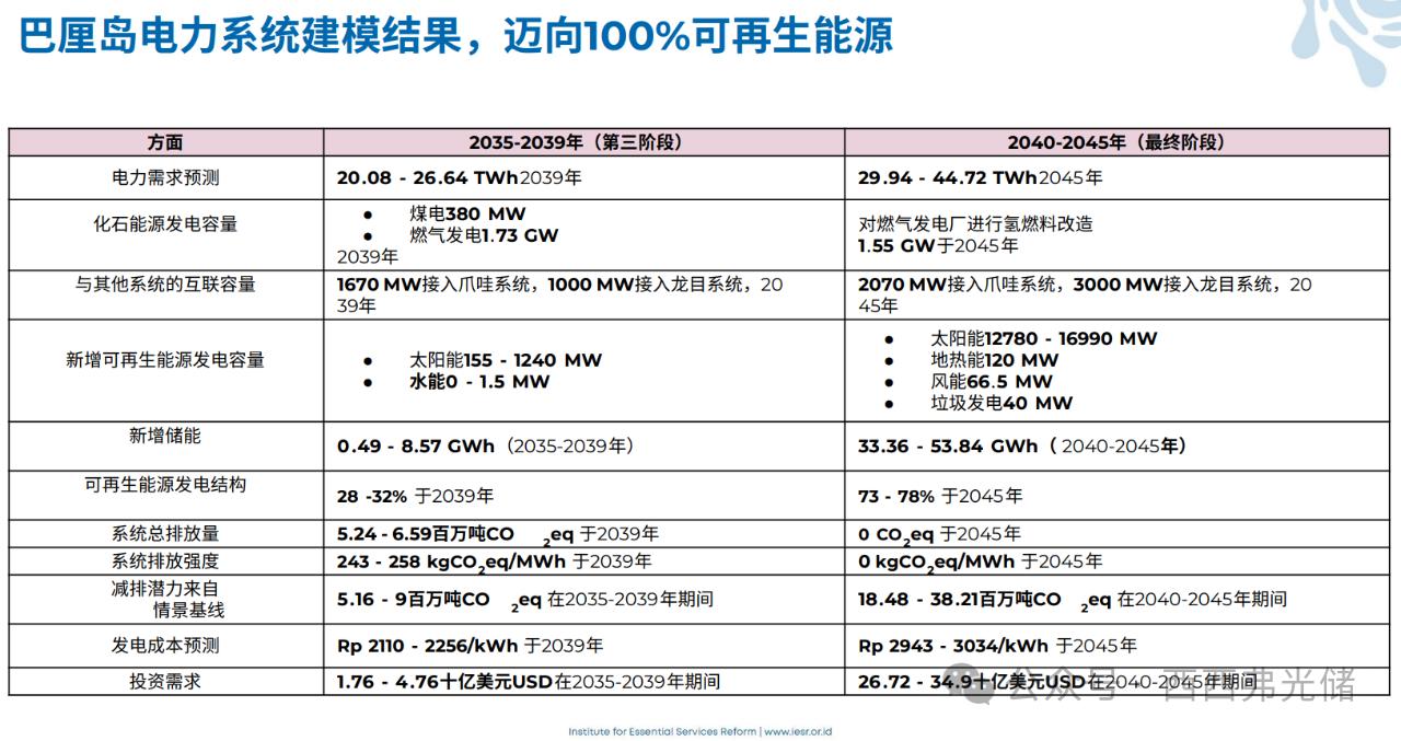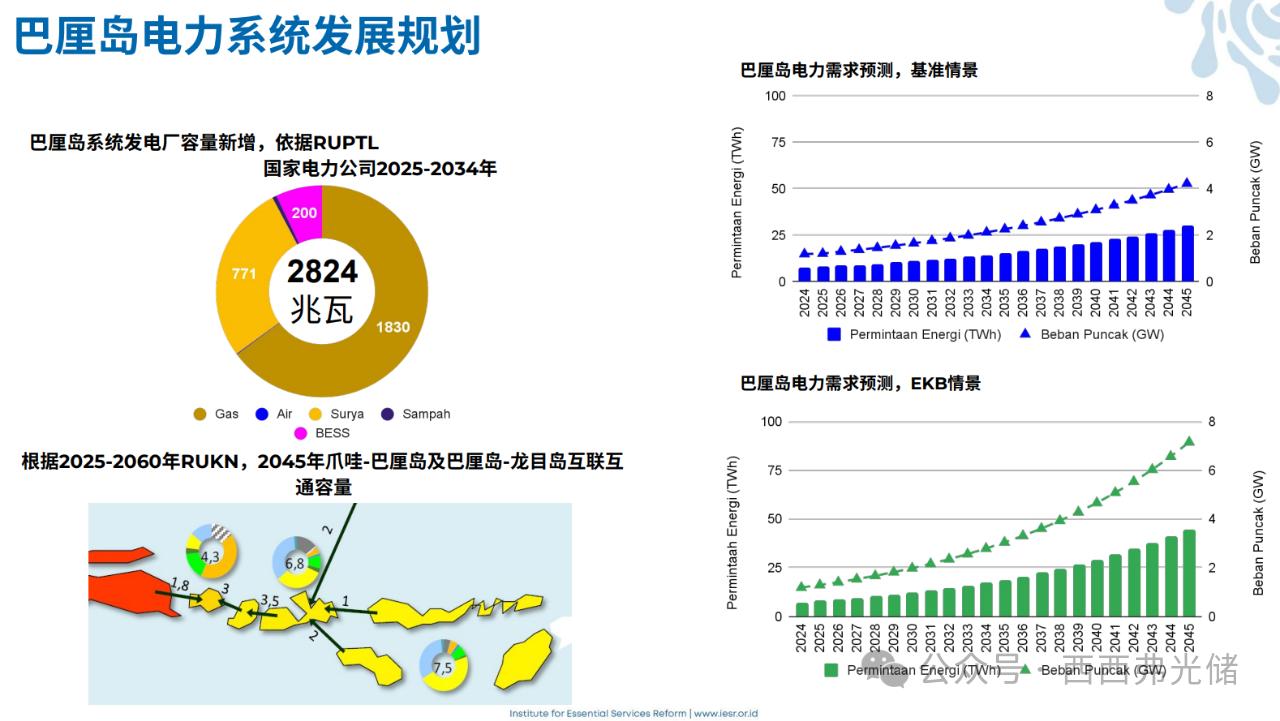 各岛屿和地区正在探索不同的路径。巴厘岛制定了全面的分阶段净零排放(NZE)路线图,将BESS的部署量从2030年的兆瓦时(MWh)级别最终扩展到2045年的吉瓦时(GWh)级别 。苏拉威西岛则采取了分层策略,利用电池进行日常调峰,通过岛屿互联进行周度管理 。而松巴哇岛则提出了一种独特的方法,即用绿色氢气和氨取代化石燃料 。