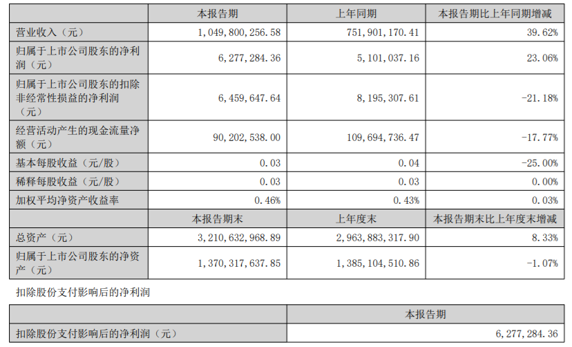 日前,英力股份(300956.SZ)披露了其2025年半年报,财报数据显示,2025年上半年,英力股份实现营业收入10.50亿元,同比增长39.62%。在净利润方面,公司实现归母净利润627.73万元,同比增长23.06%,扣非归母净利润则为645.96万元,同比下降21.18%。