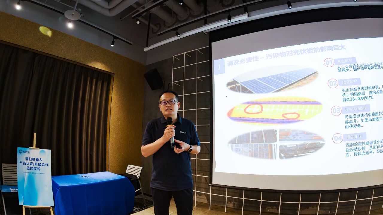 他指出,当前光伏组件清洁效率直接影响电站收益,但行业存在标准缺失、认证体系不完善等痛点,发电集团对机器人在沙漠、高寒等特殊场景的性能提出严苛要求。作为行业先行者,鉴衡继2020年发布国内首份清扫机器人技术规范后,此次全新推出科学完整的检测认证方案,为行业树立质量标尺,推动规范化发展。周罡强调,此次发布会以 “标准引领、质量取胜” 为核心,鉴衡将携手行业各方凝聚智慧、深化创新,以标准为基石、认证为桥梁,为光伏清扫机器人应用铺就高质量发展黄金赛道,开启光伏智能运维新篇章。