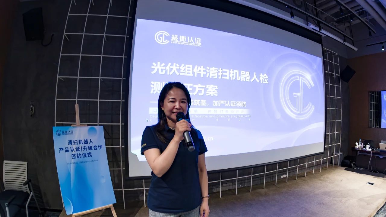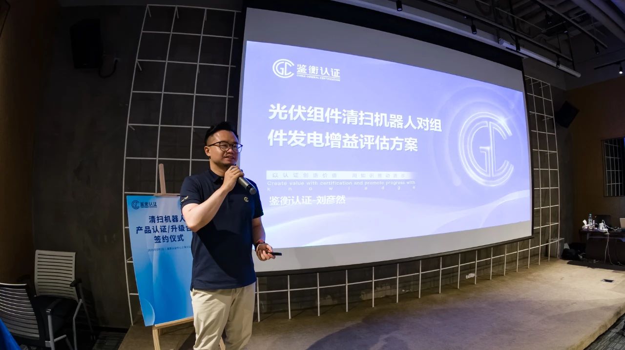 发布会上,鉴衡隆重推出了光伏组件清扫机器人全套检测认证解决方案,包括:基础检测认证、加严检测认证、发电量增益评估,这套方案可为优质制造商的清扫机器人产品提供权威的证明及投标通行证,也为发电集团及运维商更好地筛选产品提供可靠的技术参考。