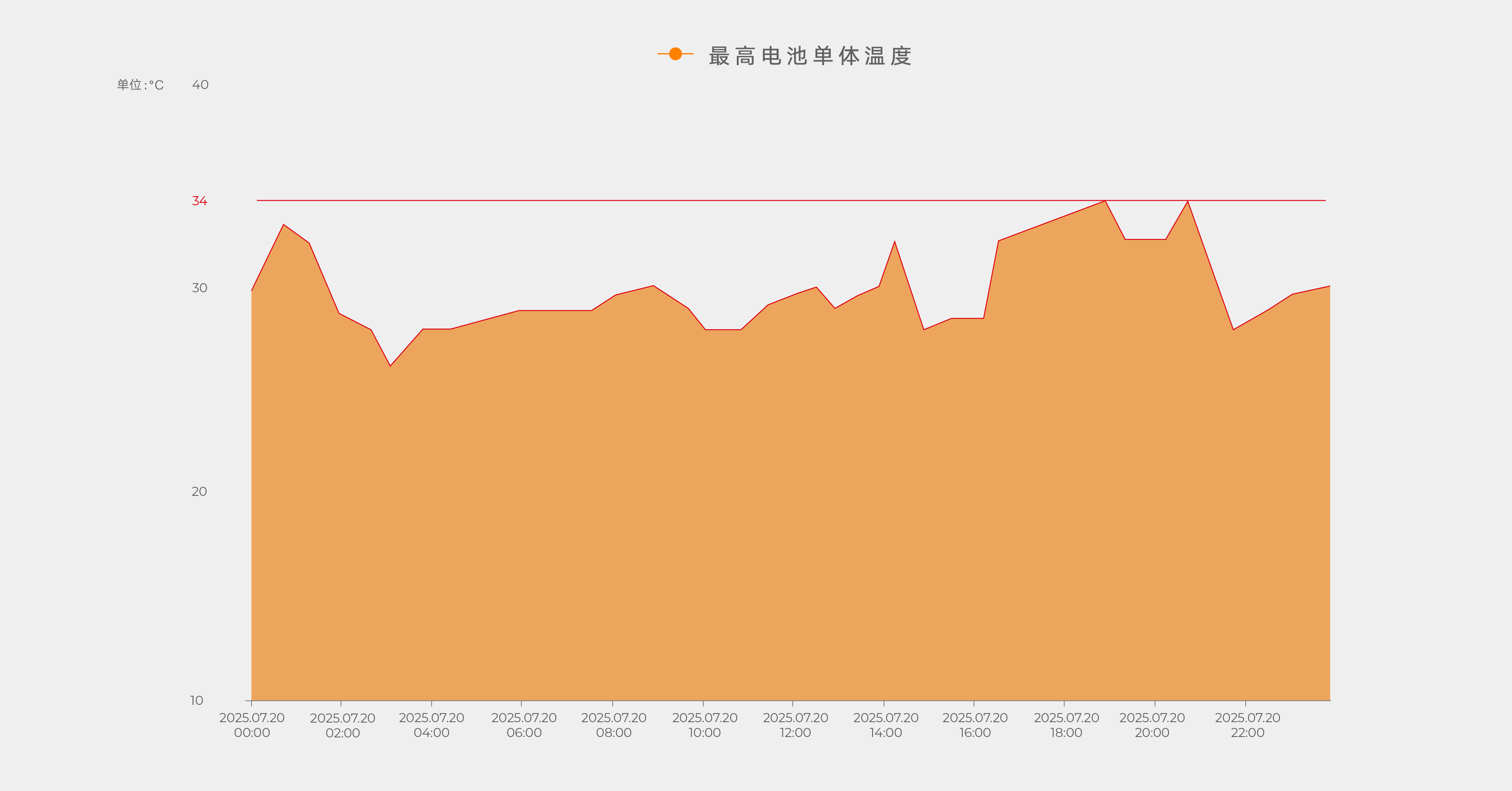 表 1青浦区储能项目高温期间电芯最高温度日内波动图,电芯最高温度为 34℃