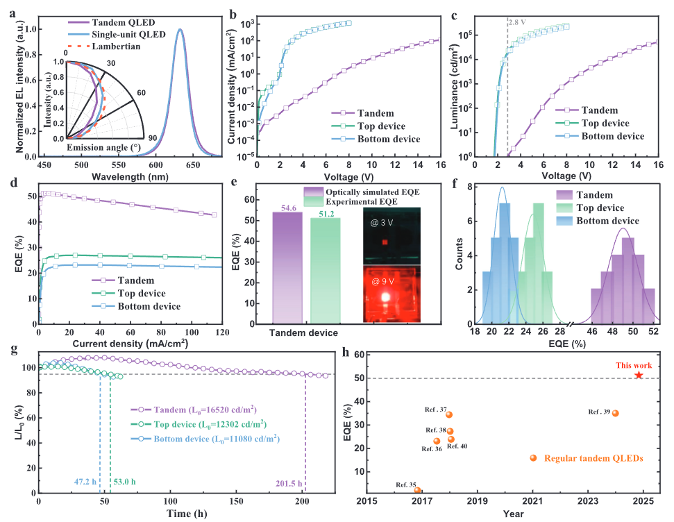 D. Yang, Y. Wang, J. Xie, D. Pan, B. Zou, and H. Zhang, “ Regular Tandem Quantum Dot Light-Emitting Diodes with over 51% External Quantum Efficiency for Next-Generation Displays.” Adv. Mater. (2025): e08173.