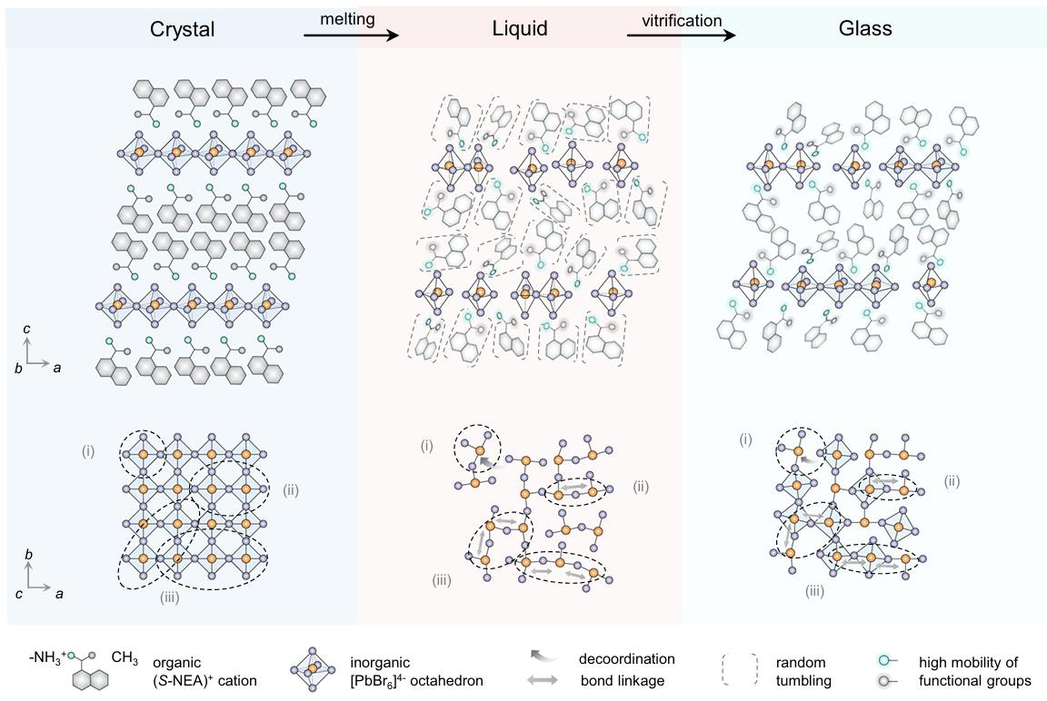 杂化有机-无机钙钛矿(HOIPs)因其晶体特性备受关注,而最新研究发现它们还能形成液态和玻璃态,为非晶态材料研究提供了新平台。