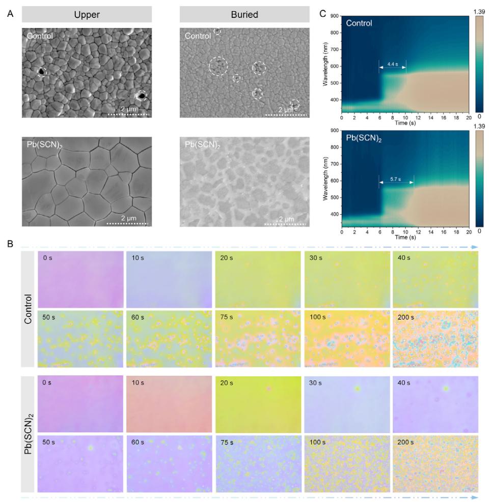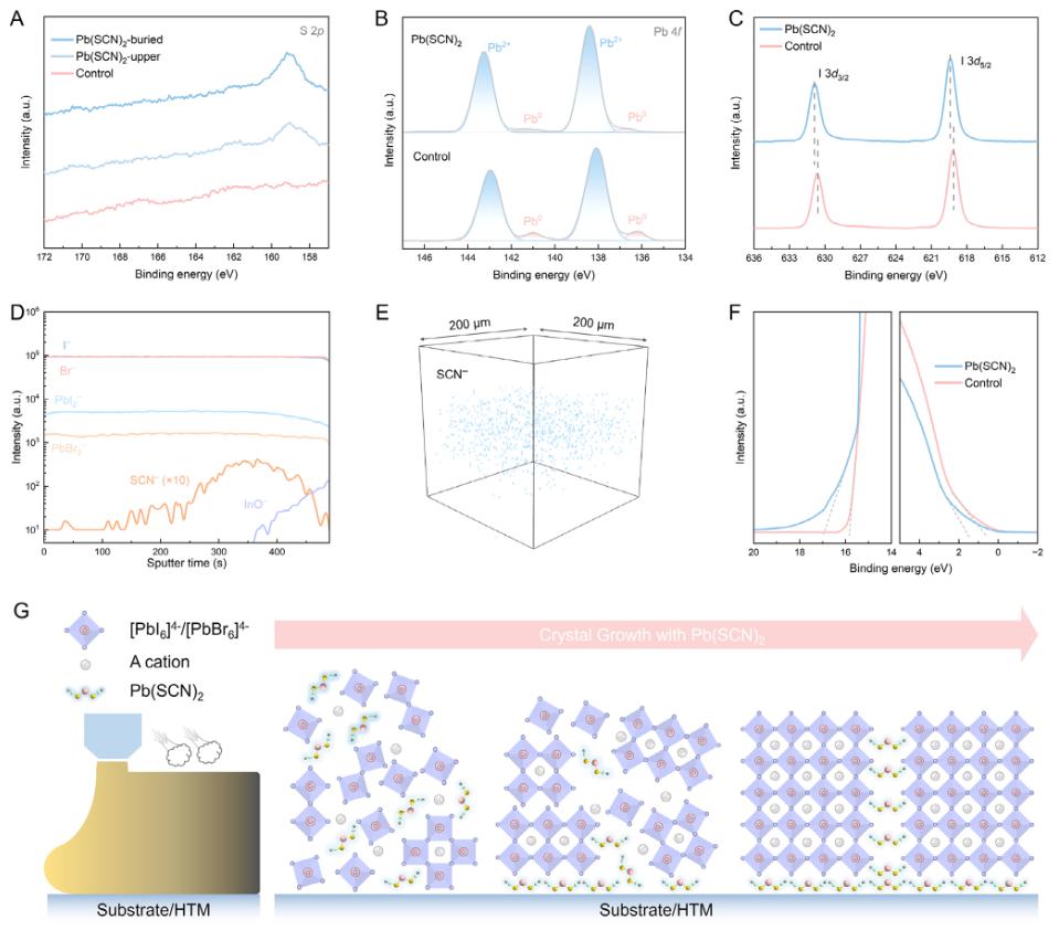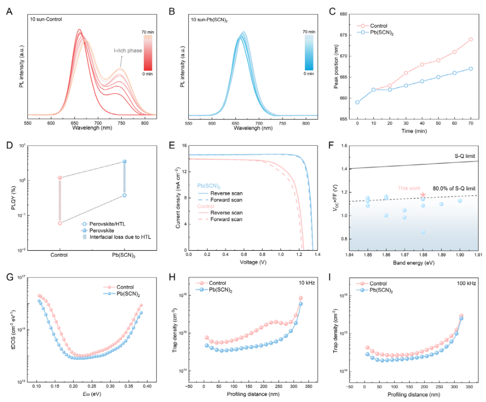 机理创新:硫氰酸盐通过垂直梯度分布和强配位作用,抑制了卤化物相分离和金属铅缺陷,优化了能级对齐,减少了非辐射复合损失。