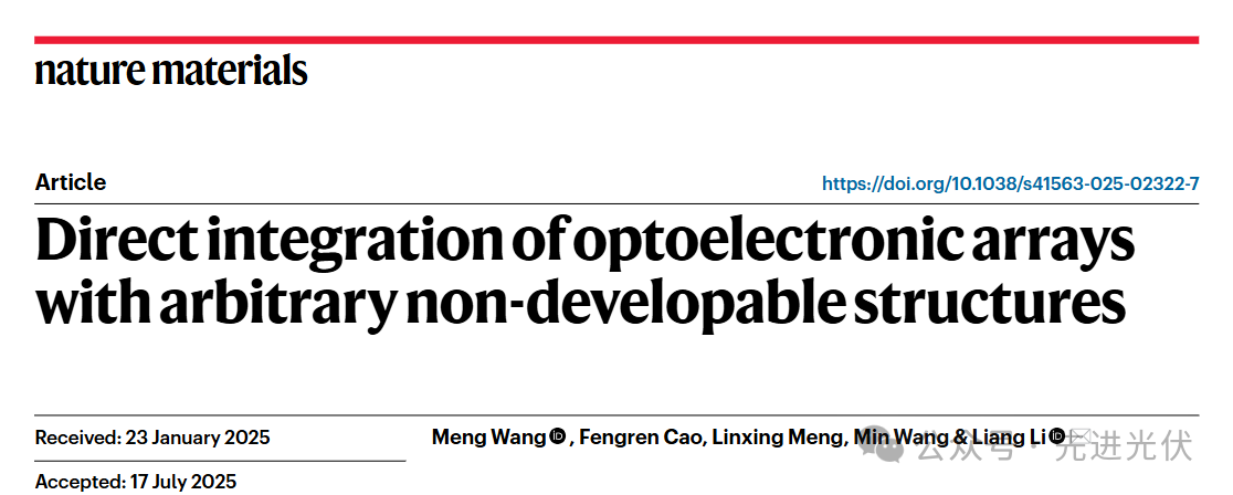 Wang et al. Direct integration of optoelectronic arrays with arbitrary non-developable structures. Nature Materials (2025).