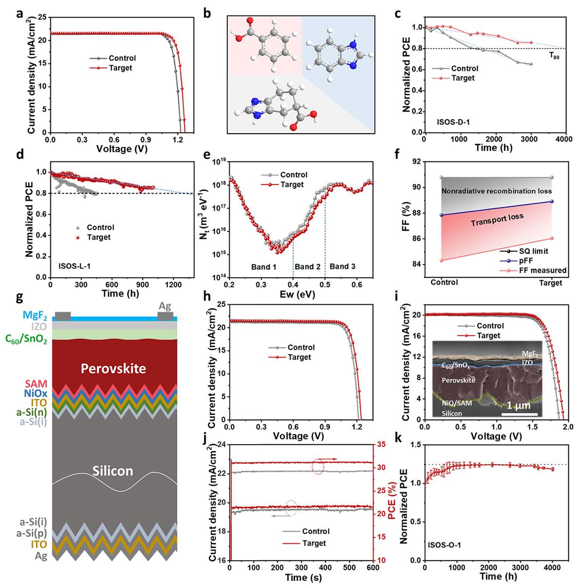 使用MBC的钙钛矿/硅叠层电池效率达到31.57%,同时表现出极低的滞后效应和优异的户外稳定性(封装器件在4000小时后性能仍保持稳定),展现了其商业化潜力。
