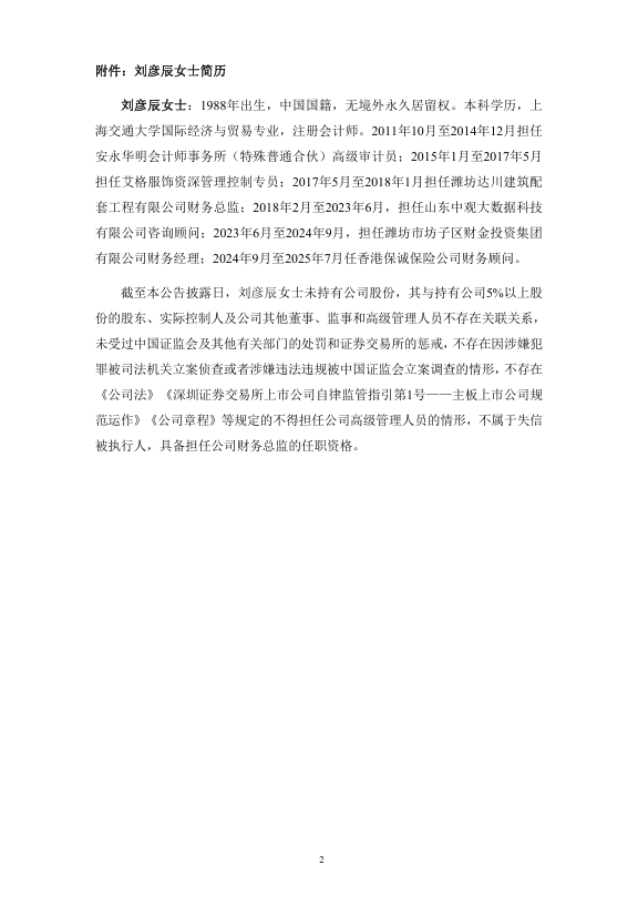 刘彦辰:1988年出生,中国国籍,无境外永久居留权。本科学历,上海交通大学国际经济与贸易专业,注册会计师。