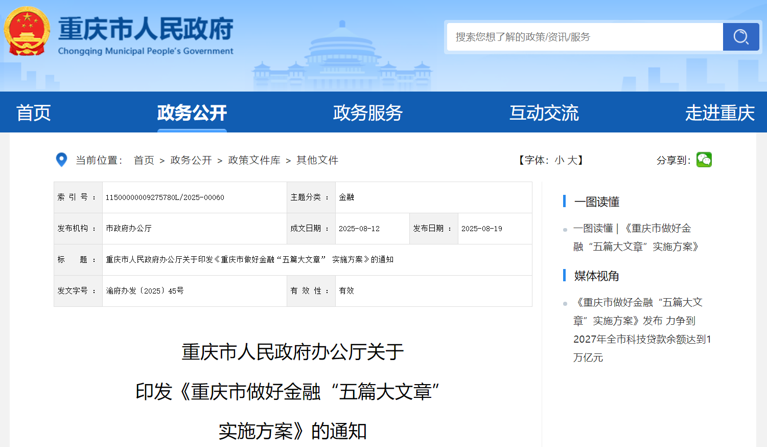 根据国务院办公厅《关于做好金融“五篇大文章”的指导意见》(国办发〔2025〕8号)要求,结合重庆市实际,制定本实施方案。