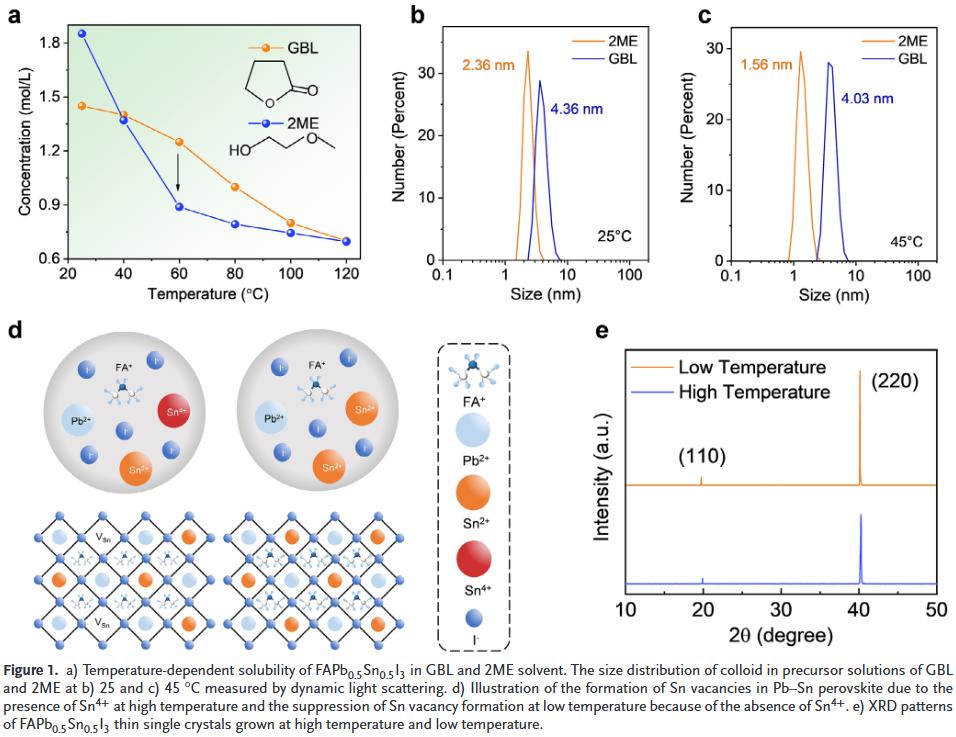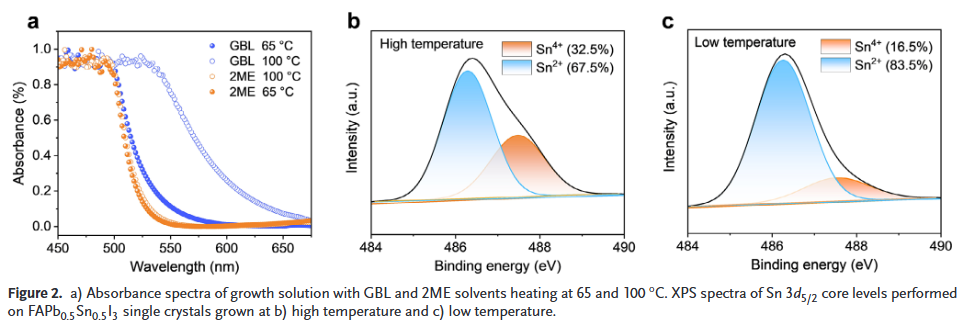 使用2-甲氧基乙醇(2ME)作为溶剂,将晶体生长温度从>100°C降至<60°C,显著减少Sn²⁺氧化和空位陷阱形成,提升晶体质量。