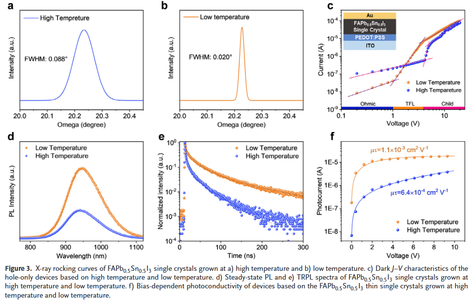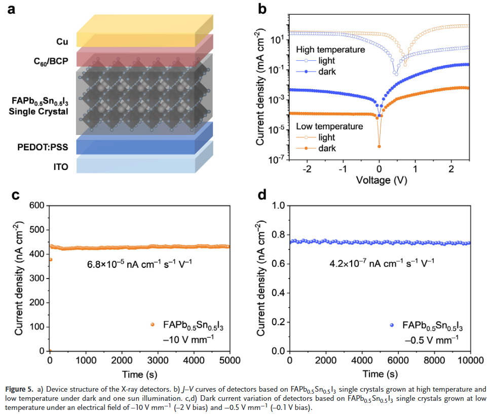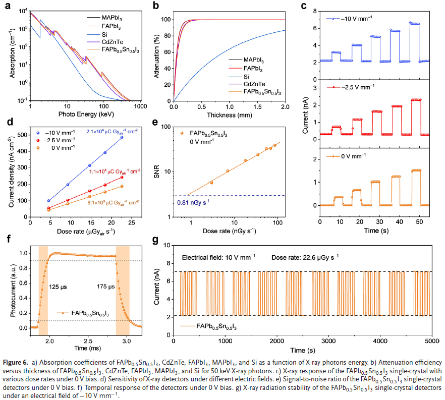H. Zhao, N. Liu, N. Li, et al. “ Low-Temperature Grown FAPb0.5Sn0.5I3 Single Crystals for Sensitive X-Ray Detectors with Low Dark Current and Detection Limit.” Adv. Funct. Mater. (2025): e17233.