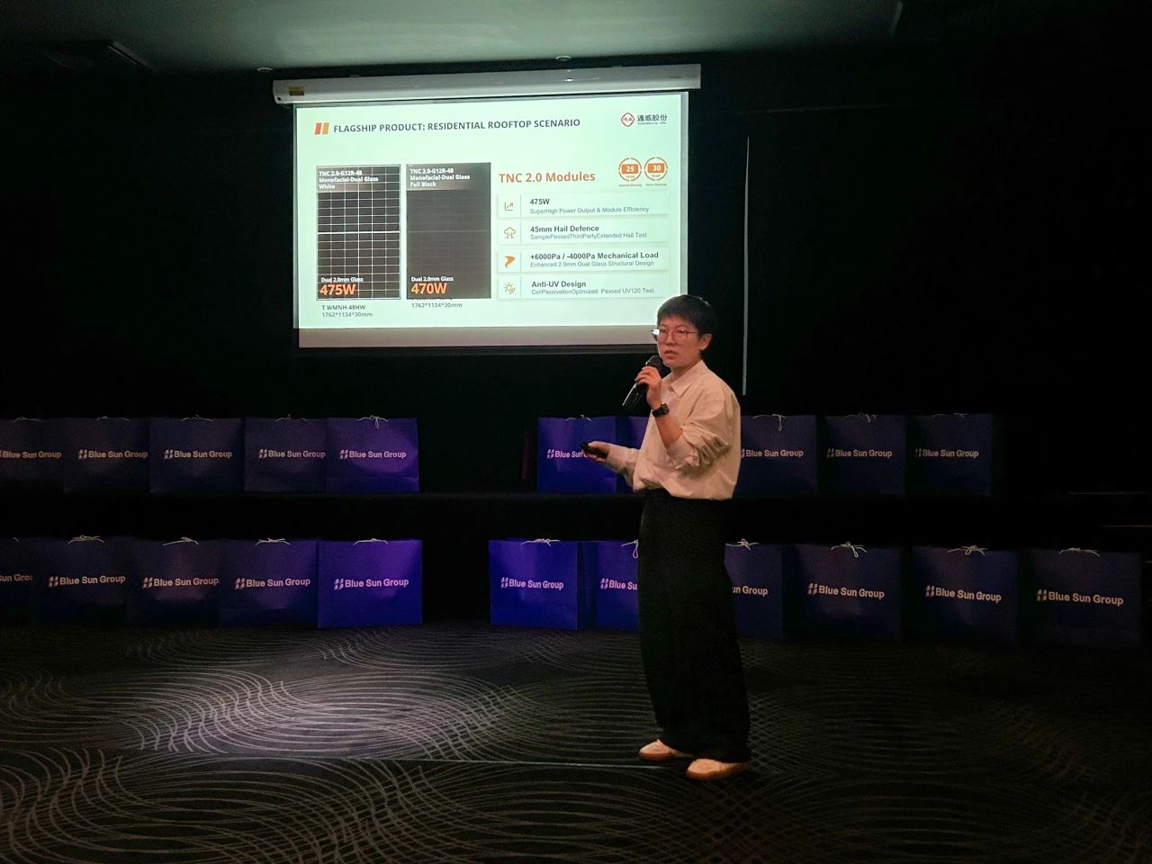 活动中,通威重点推介了TNC 2.0 48版型组件,向澳洲市场展示了这一创新产品的强大优势。澳洲作为光伏领域的重要市场之一,面临着独特的气候挑战,特别是频繁的冰雹和飓风等极端天气。如何在这些挑战中保证光伏系统的高效性与稳定性,成为行业关注的核心问题。