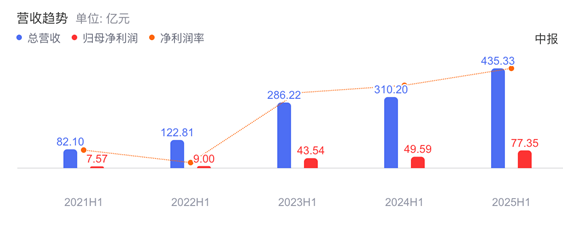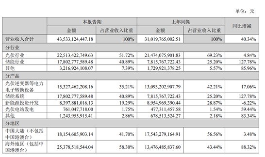 与此同时,阳光电源披露了2025年中报,根据报告,2025年1-6月,阳光电源实现营业收入435.33亿元,同比增长40.34%;归属于上市公司股东的净利润77.35亿元,同比增长55.97%,盈利能力显著提升。