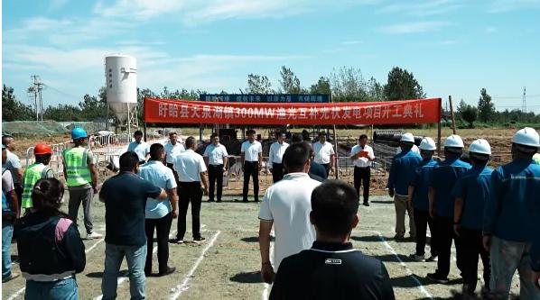 8月23日,江苏省淮安市盱眙县天泉湖镇300WM渔光互补光伏发电项目开工。