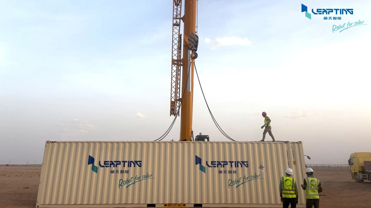 尽管中东八月骄阳似火,但并不影响LEAPTING丽天智能(以下简称“丽天智能”)自动导航组件铺设机器人在极端环境下的高效作业!
