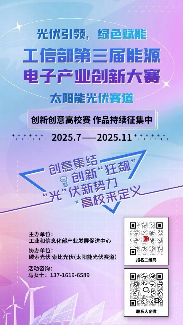 往届高校团队的创新成果已充分证明,产学研协同是破解产业困局的有效路径。第三届能源电子产业创新大赛太阳能光伏赛道正在火热招募优质项目。期待更多高校团队带着前沿创意加入这场绿色革命,共同推动实验室的微光点亮产业星河!