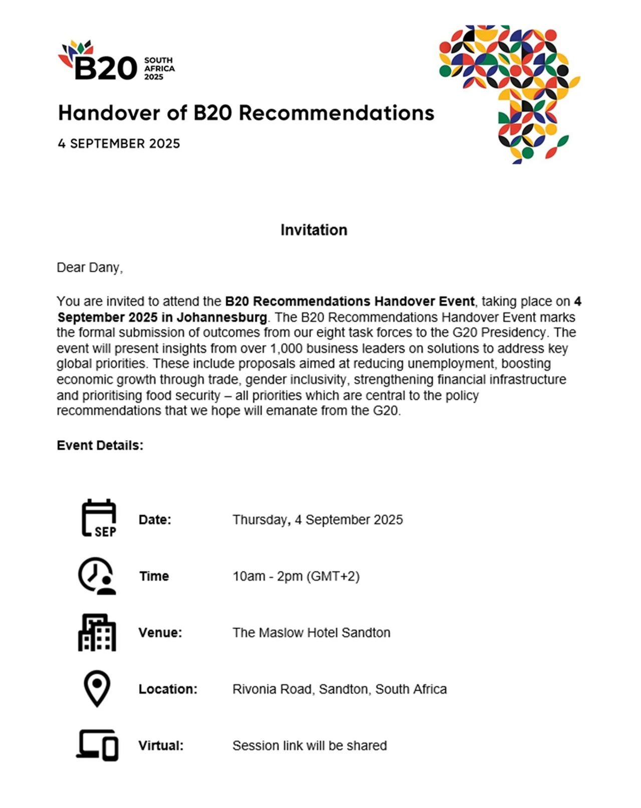 作为B20南非工业转型与创新工作组的联席主席,晶科能源深度参与的B20政策白皮书业已成稿,将于9月4日正式移交G20轮值主席国南非。