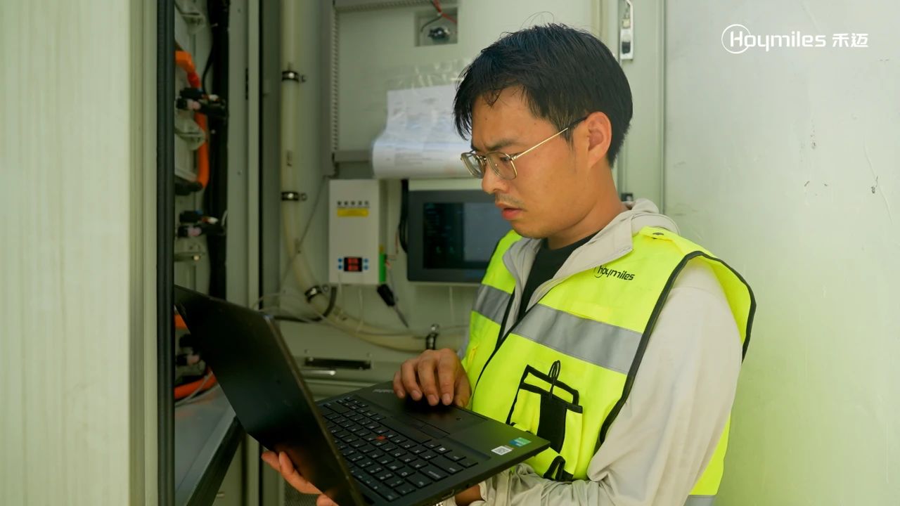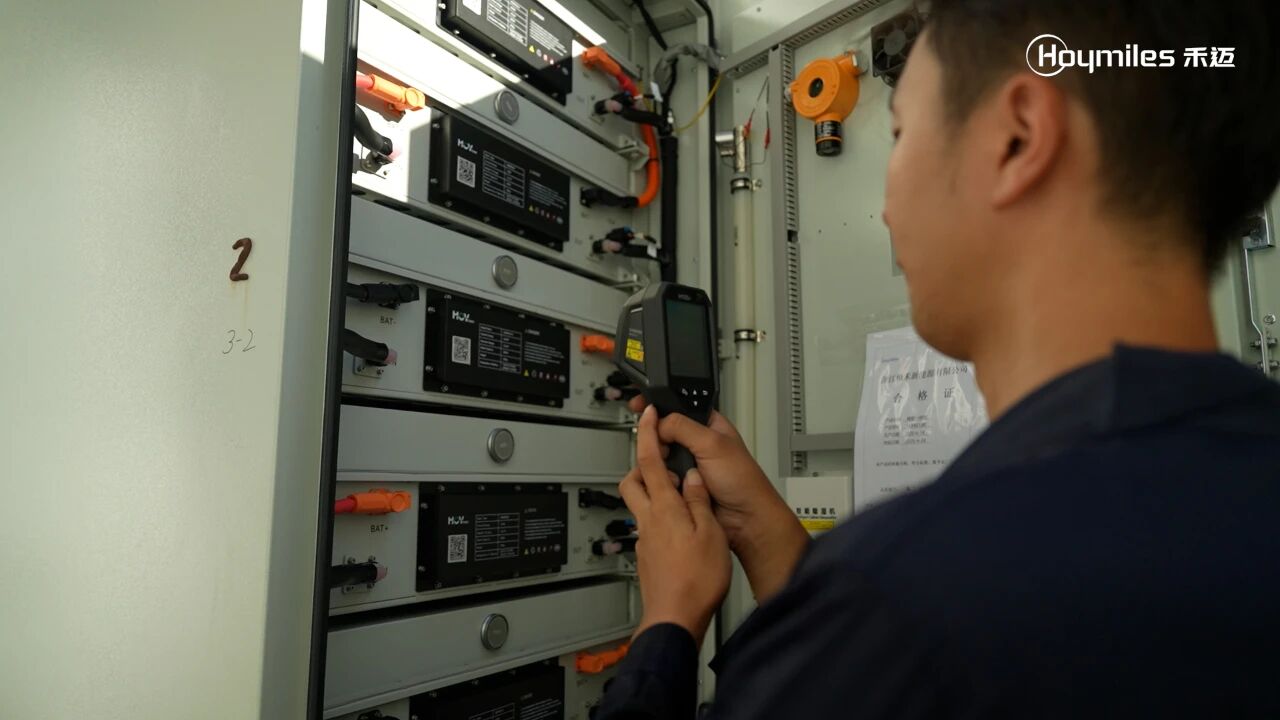 在现场,禾迈团队严格遵循标准化流程,逐项开展专业检测,对外观与环境、电气安全、系统性能等多维度进行全面检测。禾迈技术工程师通过运维云平台实时调取运行数据,全面评估电池模组健康状态、充放电效率及温度控制表现,确保设备处于最优运行状态。