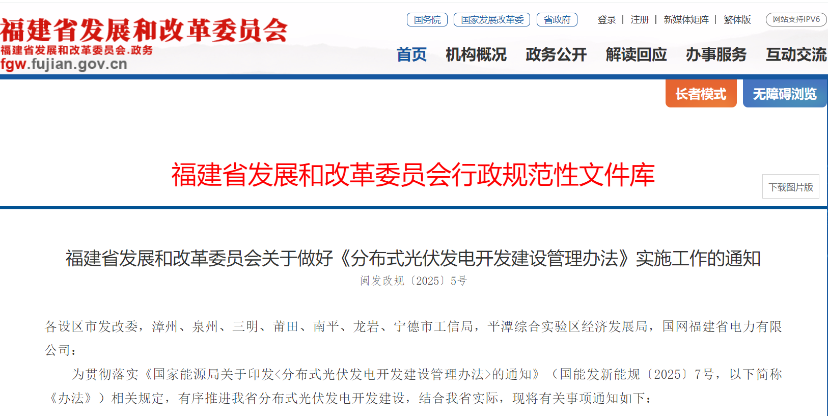近日,福建省发展和改革委员会发布关于做好《分布式光伏发电开发建设管理办法》实施工作的通知。
