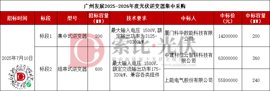 近日,广州发展2025-2026年度光伏逆变器集中采购成交结果公示。