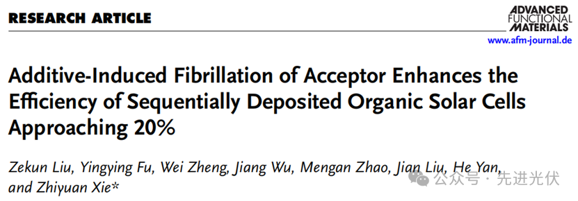 Z. Liu, Y. Fu, W. Zheng, et al. “ Additive-Induced Fibrillation of Acceptor Enhances the Efficiency of Sequentially Deposited Organic Solar Cells Approaching 20%.”Adv. Funct. Mater. (2025): e16060.