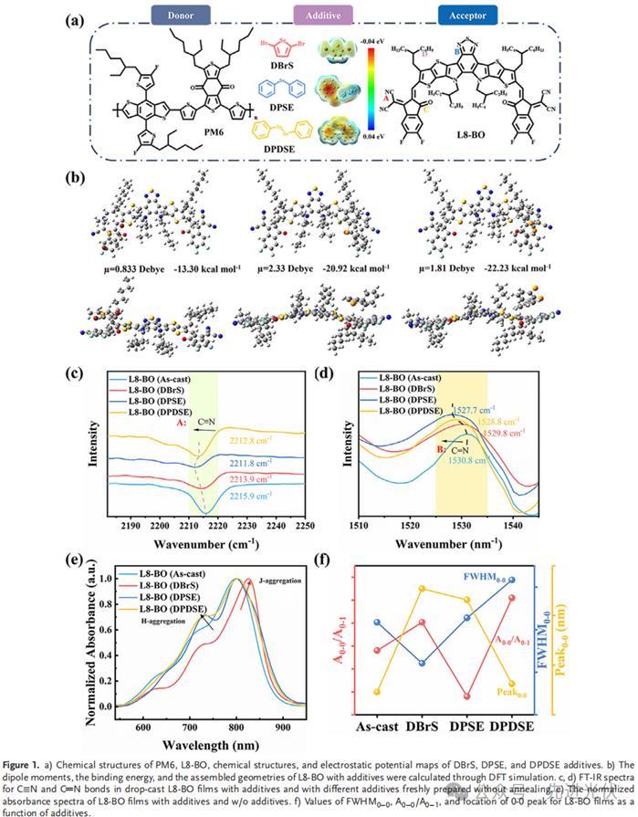本研究筛选了三种新型硒基添加剂DBrS、DPSE和DPDSE,并将其分别加入受体溶液中,成功制备了SD二元OSCs。这些添加剂促进了受体纤维化,提高了结构秩序和结晶度。