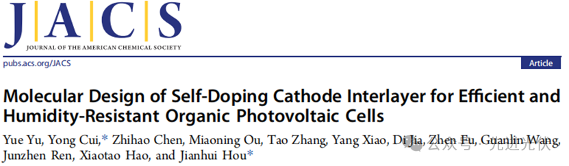Yu, Y.; Cui, Y.; Chen, Z.; Ou, M.; Zhang, T.; Xiao, Y.; Jia, D.; Fu, Z.; Wang, G.; Ren, J.; et al. Molecular Design of Self-Doping Cathode Interlayer for Efficient and Humidity-Resistant Organic Photovoltaic Cells. J. Am. Chem. Soc. 2025.
