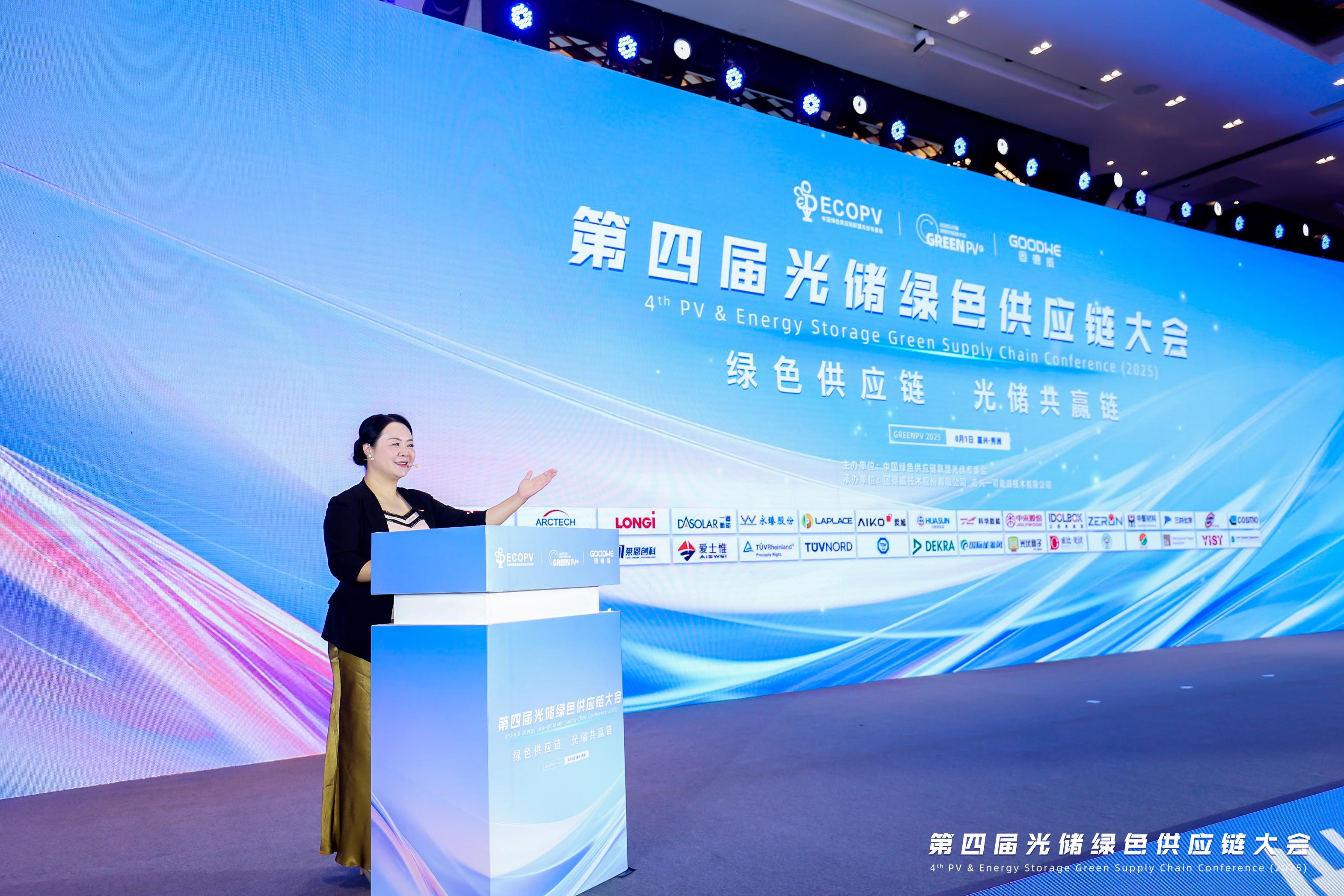 大会开幕式由中国绿色供应链联盟光伏专委会秘书长吕芳主持,吕芳秘书长对各位光伏同仁的到来表示热烈欢迎和感谢。中国绿色供应链联盟光伏专委会主任 、长三角太阳能光伏技术创新中心主任沈辉,固德威技术股份有限公司副总裁王英歌分别为本次大会致辞。