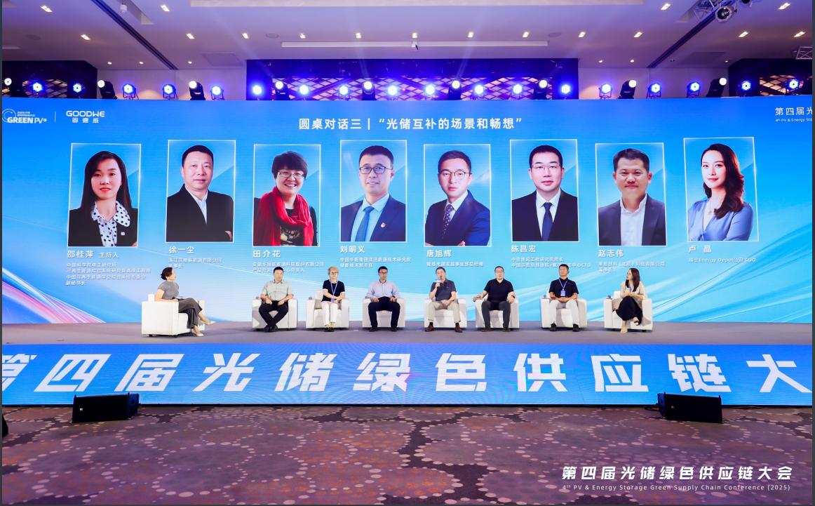第三场圆桌对话由中国科学院电工研究所可再生能源综合系统研究部高级工程师、中国可再生能源学会综合系统专委会副秘书长邵桂萍主持。中国华能集团清洁能源技术研究院储能技术部主任刘明义,隆基光建家庭事业部总经理唐旭辉,安徽华晟新能源科技股份有限公司产品开发管理中心负责人田介花,中信博风工程研究院院长、中国运营总部跟踪+解决方案中心CTO陈昌宏,浙江沃橙新能源有限公司董事长徐一尘,莱恩创科(北京)科技有限公司董事长赵志伟,瑞士Energy Depot 公司COO卢晶等嘉宾,聚焦异质结产业化、家庭绿电解决方案、绿电+的全场景布、组串式储能安全、储能热失控风险解决方案、光伏电站自清洁技术等前沿场景展开前瞻思辨。