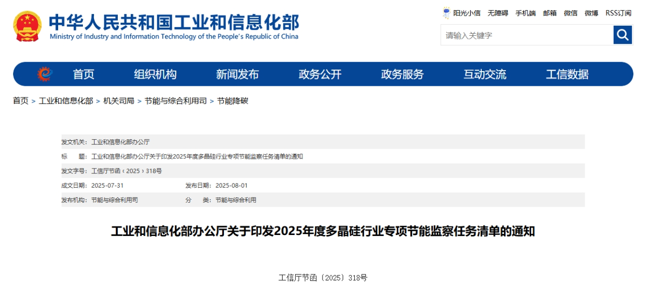 工业和信息化部办公厅关于印发2025年度多晶硅行业专项节能监察任务清单的通知