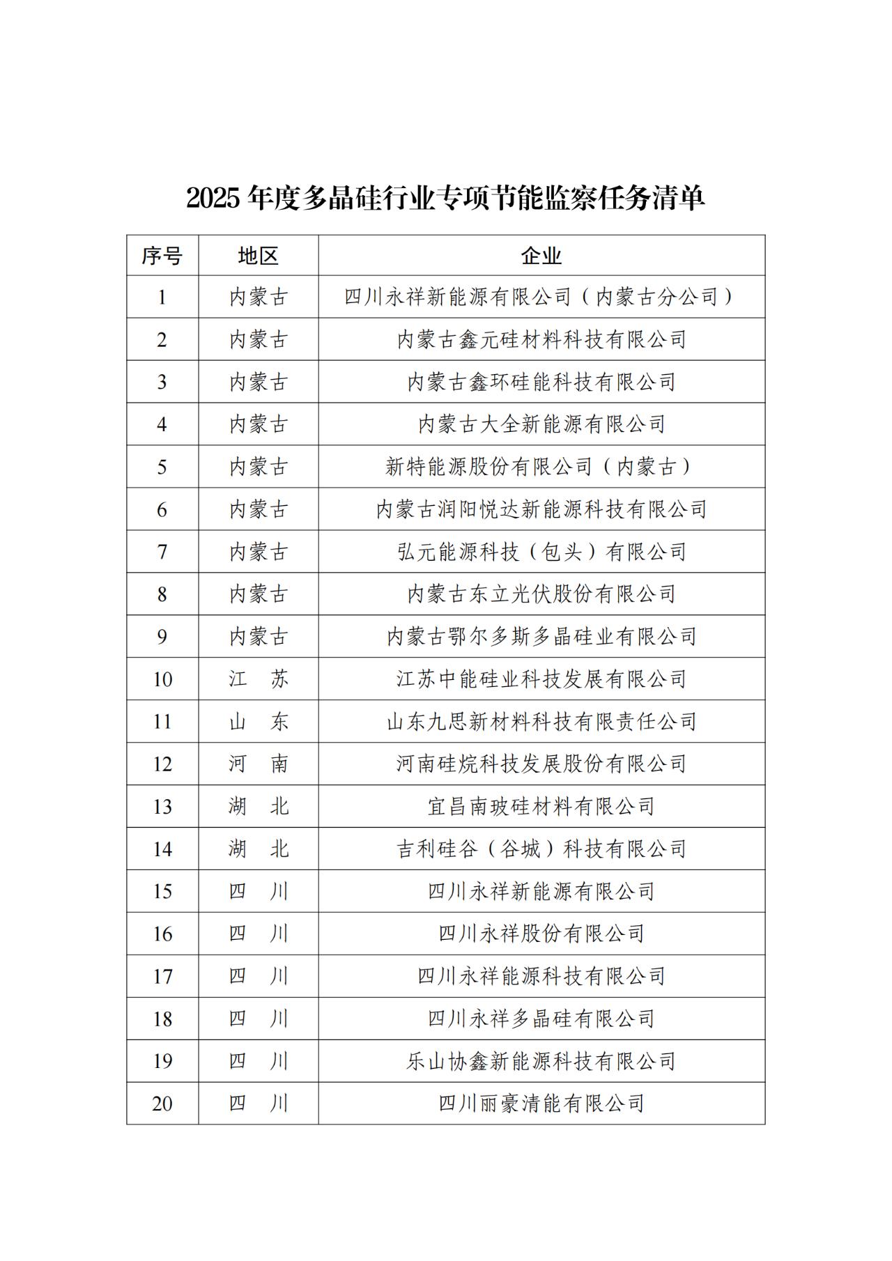 附件:2025年度多晶硅行业专项节能监察任务清单