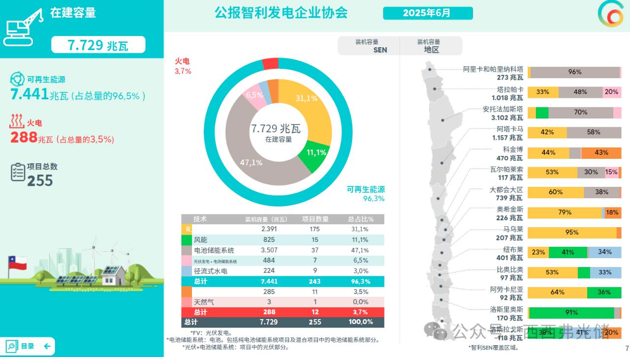 目前共有7729 MW的容量正在建设中,其中可再生能源项目占96.3%。