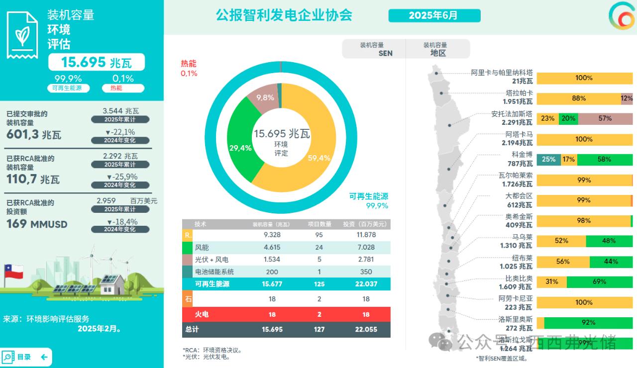 另有15695 MW的容量正在进行环境评估,其中99.9%为可再生能源。光伏(9328 MW)和风能(4615 MW)项目在这一评估阶段占主导地位。