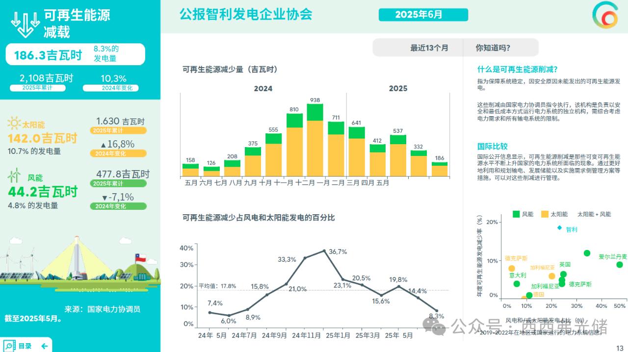 尽管智利在其向可再生能源电力系统的转型中庆祝了重要的里程碑,但2025年6月的数据凸显了对输电基础设施和储能进行投资的迫切需求,以缓解拥堵并最大限度地减少清洁能源的浪费。