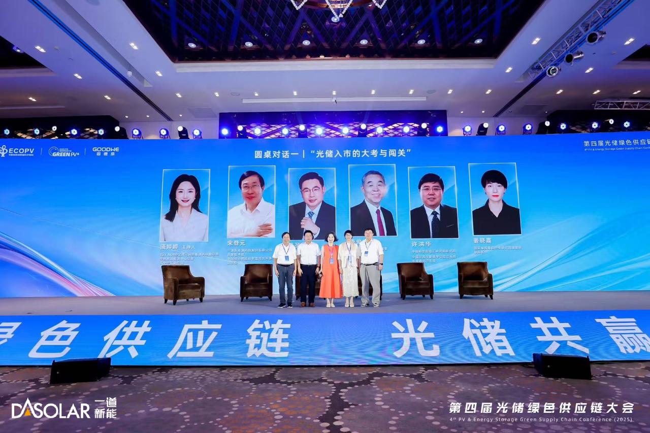 近日,由中国绿色供应链联盟光伏专业委员会(ECOPV)主办的“第四届光储绿色供应链大会”在浙江嘉兴召开。来自光储供应链企业、行业协会、检测机构、科研院所和高等院校的300余位代表、专家学者参加会议。大会以“绿色供应链,光储共赢链”为主题,旨在深化绿色合作,共筑光储产业新生态。一道新能首席技术官、ECOPV副主任宋登元博士出席大会并主持了“供应链 共赢链”产业主旨报告环节,同时参加了“光伏入市的大考与闯关”圆桌对话,对话围绕“内卷破局、技术突破、产品创新、生态共建”展开深度探讨,解析如何破内卷,闯出一条光伏产业共生共赢的破局之道。