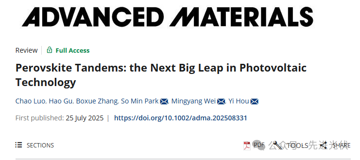 C. Luo, H. Gu, B. Zhang, S. M. Park, M. Wei, Y. Hou, Perovskite Tandems: the Next Big Leap in Photovoltaic Technology. Adv. Mater. 2025, e08331.