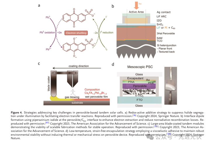 (1)系统阐述了光诱导相分离、卤化物迁移等降解机制,并提出了伪卤素工程、晶格应变调控等创新性稳定策略。