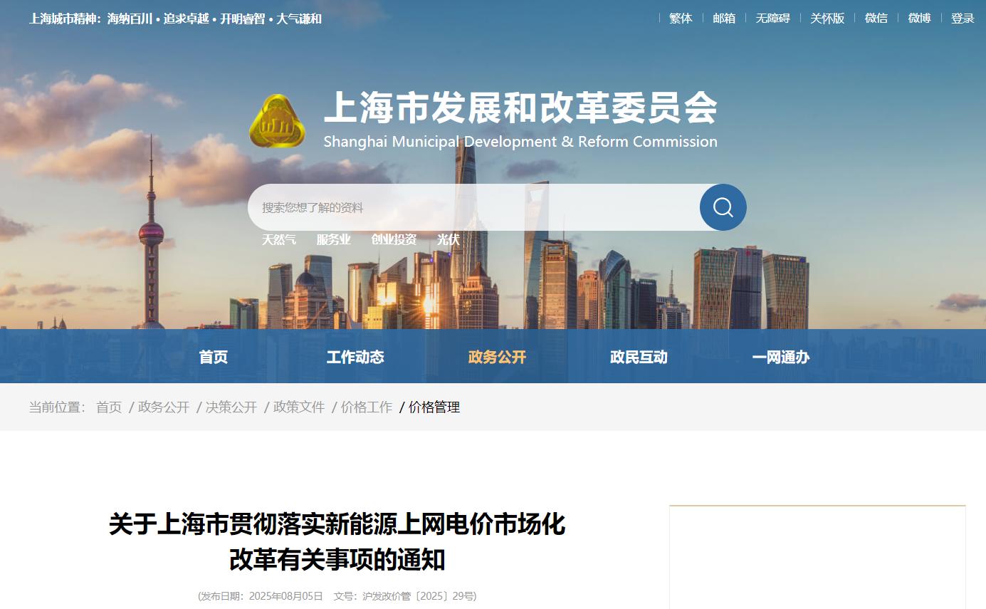 8月5日,上海发改委发布关于上海市贯彻落实新能源上网电价市场化改革有关事项的通知。