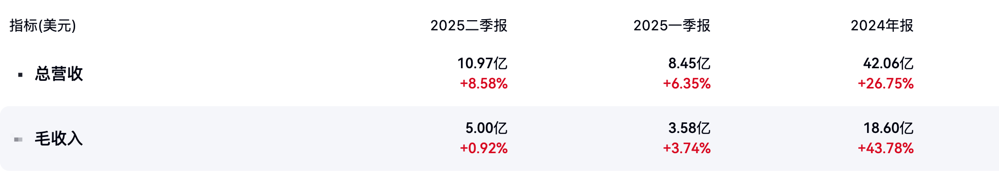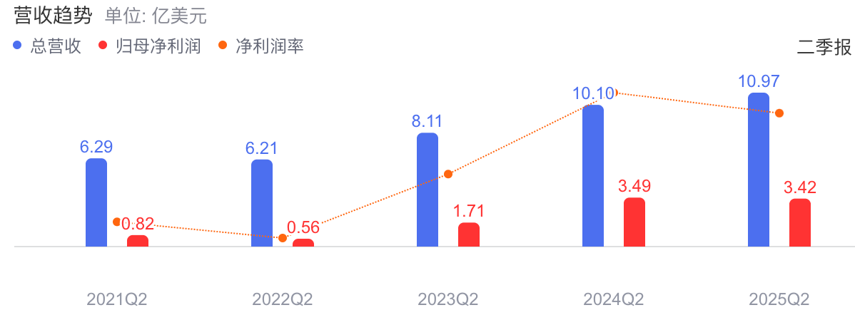 此外,公司毛利为5亿美元,毛利率达到45.6%,较第一季度上升4.8个百分点,但较2024年第二季度下降3.8个百分点。