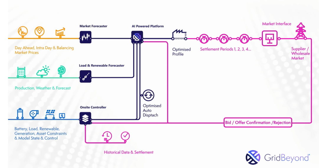 GridBeyond 平台通过构建企业级“数字孪生”模型,实现用电场景的实时仿真与预测。系统每5–15分钟执行一次决策循环。